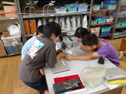 理科で「めだかの誕生」を学習しています。双眼実体顕微鏡と解剖顕微鏡を使って、めだかの卵を観察しました。「心臓が動いている。」「卵の中で一回転した。」などと、気づいたことをたくさん発言していました。