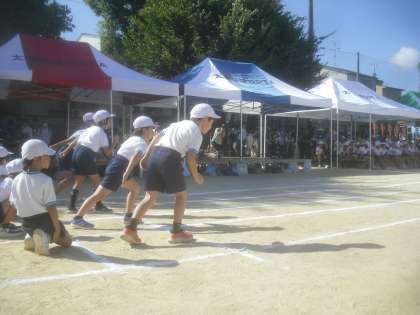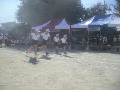 2年生は50m走を行いました。先生の合図をしっかりと見ながら、スタートのタイミングをしっかりと計ることができていました。