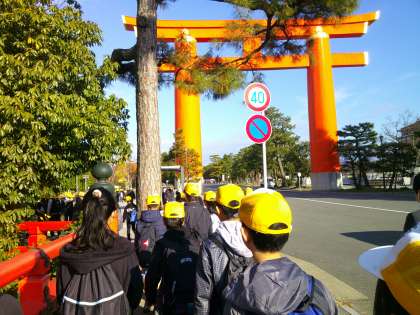 東山駅から歩いて劇場へ向かいました。平安神宮の鳥居を横に京都の街並みを感じながら歩きました。