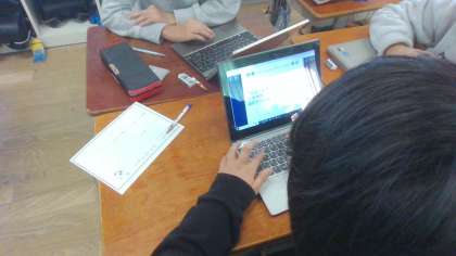 国語科の学習で、自分がおすすめしたいもののパンフレットを作る学習をしています。どうやって自分のおすすめをみんなに薦めるのか、必死に考えています。