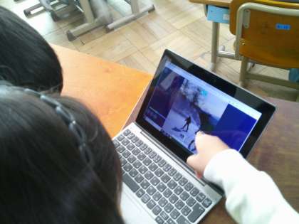 冬休みの日記を友達に紹介しました。冬休み中の動画を見て、楽しかった冬休みの思い出を話しました。