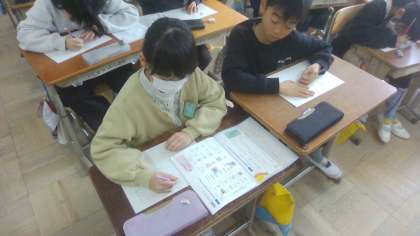 書写の硬筆では、文字の大きさや行の中心に気をつけて書きました。また、めあてを意識して自分で作った俳句を紙に書きました。一生懸命、いろいろな俳句を考えて素敵な俳句がたくさんできました。