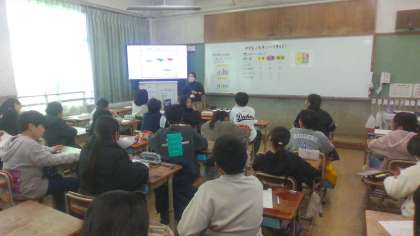 中学校給食について学習をしました。自分たちがどれだけの食事をとればいいのか、どんな栄養バランスがいいのかを学ぶことができました。