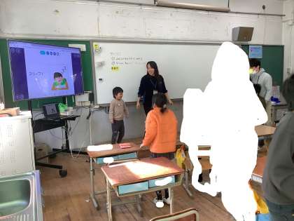 「サイモンセズ」というゲームをしました。英語版「船長さんが言いました」です。サイモン役の友だちの指示をよく聞いてジャンプしたり、眠ったり、立ち上がったり。みんなしっかり英語の指示を聞き取っていました。