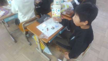理科「じしゃくのふしぎ」の学習で、鉄は磁石に変わるのか実験しました。クリップに磁石をしばらく近づけると磁石に変身することを知って、子どもたちは、予想との違いに驚いた様子でした。また一つ磁石の不思議を解決することができました。