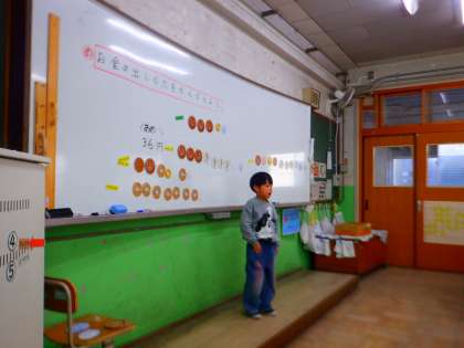 お金を使いながら、大きい数について考えました。身近なお金を使うと、「10円玉が10まいで100円になるね。」とか「50円玉を使うと(10円玉より)速くお金が出せるよ。」等、活動を通して大きな数の楽しさに気づくことができました。