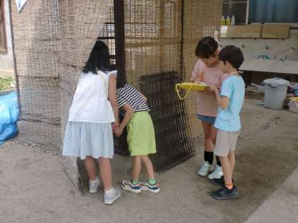 大きなプール、にわとり小屋など、たくさんの教室や場所を2年生が丁寧に教えてくれました。地図を使って楽しく探検にでかけることができました。