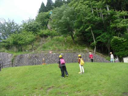 芝生の上で楽しく活動しています。