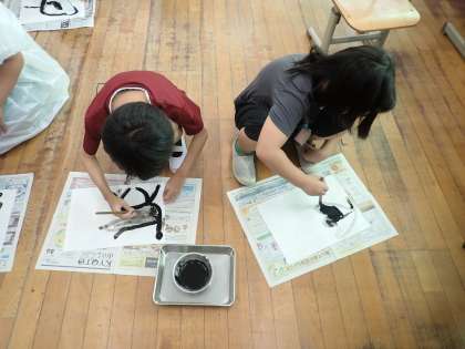 絵の具とは少し違う色合いになる墨を楽しみながら、お話の主人公をいきいきと描きました。