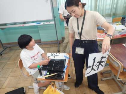 5、6年生の書写の時間には、「秋」の文字を毛筆で書きました。