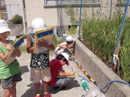 夏休みの間ぐんぐん育った稲をみんなで見に行きました。