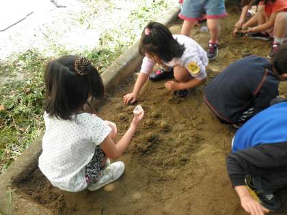 図画工作科の授業で,砂場で造形遊びをしました。