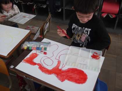 図画工作科では絵の学習を進めています。