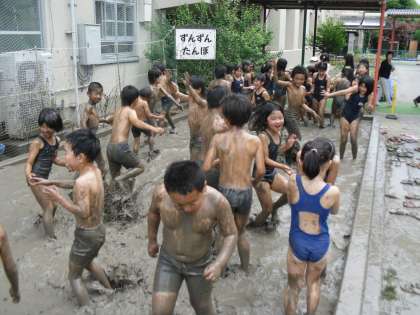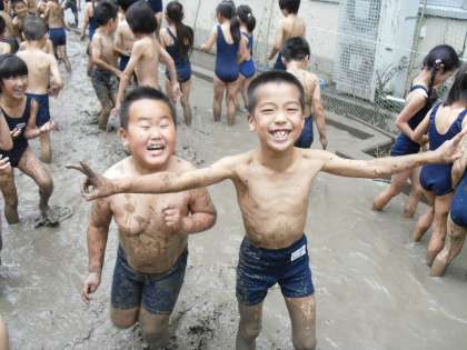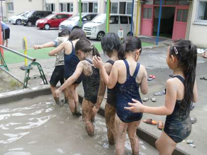 泥だらけになりながら,