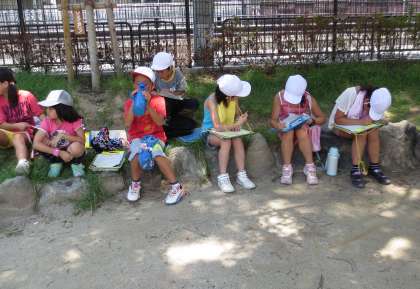 みどり学習の「エコたんけんたい」で,校区内をグループで歩き,調べたいことについて調査をしました。「空気が汚れているのはどこだろう」「ゴミはどれくらい落ちているのかな」「この辺りは音がうるさいな」というようなことを呟きながら,歩きました。
