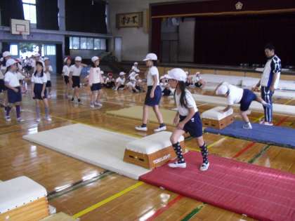 体育館でとびばこあそびと