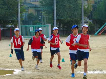 朝の太陽の日差しをあび,6年生の子どもたちは,大文字駅伝にむけて,もくもくと練習をしています。11月に入ると大文字駅伝の予選会があります。この努力は,小学校時代の一つの思い出になることでしょう。がんばれ6年生!