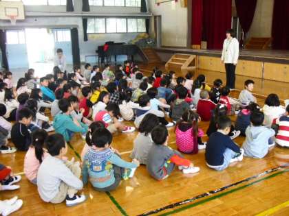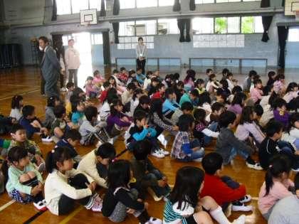 14日(月),今日は初めて1年生のお友達みんなが集まって,学年集会をしました。