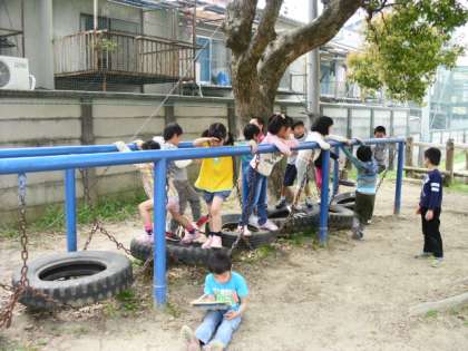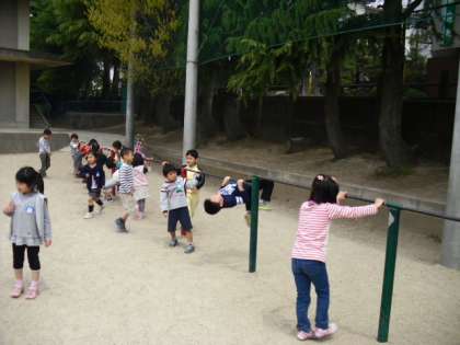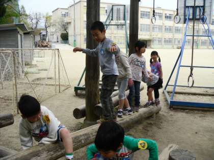 小学校の遊具はとっても大きいので,ドキドキしながら,いっぱい遊びました。
