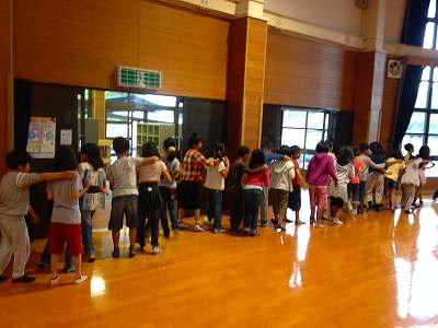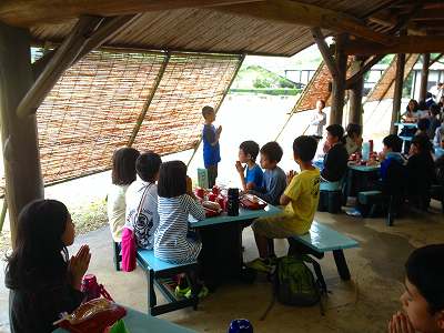 3日目の朝をむかえました。朝の集いでは昨日のキャンプファイヤーでできなかったフォークダンスを踊りました。その後,朝食を食べ3日間お世話になったみさきの家を出発します。