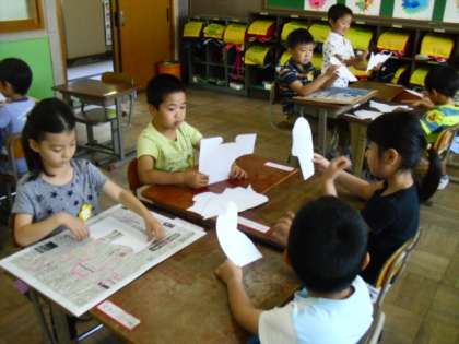 子どもたちは,色々な形の紙を次々に見て,その見え方を楽しんでいました。