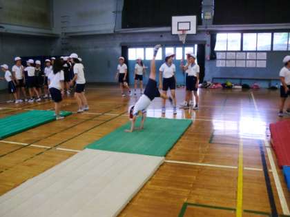 体育では,水泳学習もしながら,マット運動もしています。