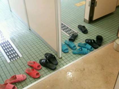 朝会の時に,トイレのスリッパの様子を子どもたちに見てもらいました。バラバラになっているスリッパをみて「ワーっ!ぐちゃぐちゃやあ」という声も…。夏休みまで1ヵ月となった今,あらためて「トイレのスリッパをそろえておくことは,次に使う人への思いやりの心があるね。」ということを伝えたいと思っています。次の人が使うために,バラバラになったスリッパをそろえてくれる子どもを見かけると,とてもうれしく思います。