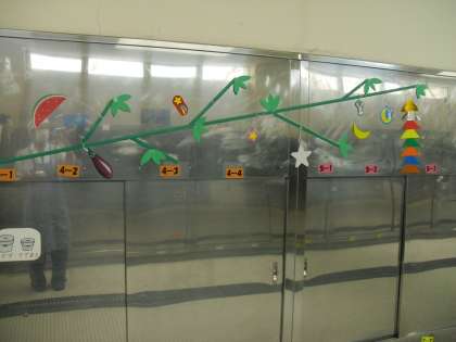 給食を受け取りにきたみんなは,壁の飾りを見たり,天井の天の川を見上げてくれたりしていました。
