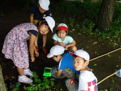 ダンゴムシや,カタツムリ,ちょうちょの幼虫,タニシなど,子ども達は一生懸命探しています。