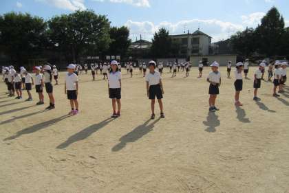 台風の予報でしたが,お昼からは晴れて,運動場で,