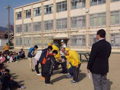 3月4日の朝に感謝の集いを開催しました。日頃,登校や下校の見守りや安全のお話をしていただく地域の皆さんにお越しいただきました。花束の贈呈のあと,児童代表のお礼の言葉や「ありがとう」の歌声を届けました。いつもいつも子どもたちのために交通安全の見守りありがとうございます。