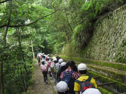午後からは水路閣と琵琶湖疏水記念館,インクラインを見学しました。琵琶湖疏水やインクラインの仕組みについてさらに詳しく学習することができました。田辺朔郎の像やトンネルの出口など,教科書に載っていたものを実際に目にすることもできてとてもうれしそうでした。