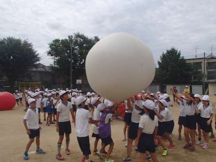 150cmの大玉(モンスターボール)をチームで運びます。