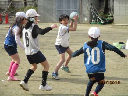今までの学習を生かして,どんどんパスを回していけるようになりました。コートの作り方も上手になり,自分達でどんどん練習できるようになりました。