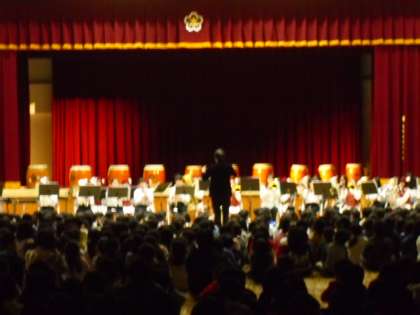 和太鼓部と金管バンドクラブが,演奏を披露してくれました。