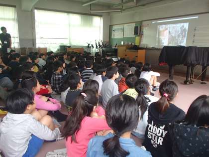 写真は五年生全員で話合いをしているところです。