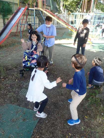 色がたくさんある総合遊具や友だちのお洋服など、みんなで色を探して楽しみました。