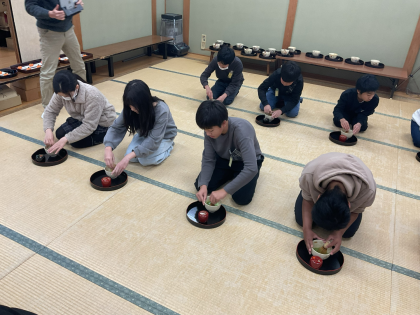 茶道体験を行いました。初めに、茶道の作法についてのお話を聞きました。その後、自分でお茶を立て、お茶菓子、お茶の順でいただきました。子ども達はとても楽しんで学習していました。日本の伝統に触れ、大切に受けついでほしいと思います。