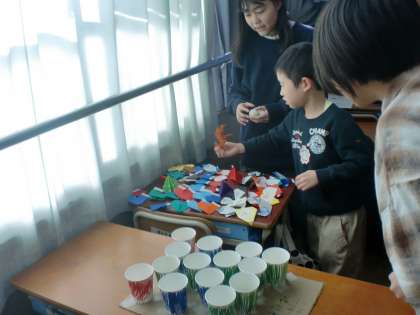 6年生から「クリスマスパーティー」の招待状をもらった1年生は、たくさん準備してくれいた楽しい遊びと景品で素敵な時間を過ごすことができました。この日のために一生懸命準備をしてくれた6年生に「ありがとうございました。」とお礼を言って教室に帰りました。両手には抱えきれないほどのプレゼントが。6年生、素敵な時間をありがとうございました。
