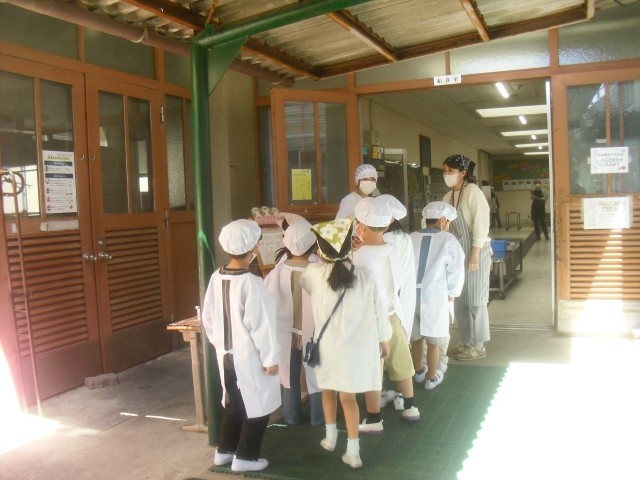 給食当番のみんなががんばって準備をしてます。