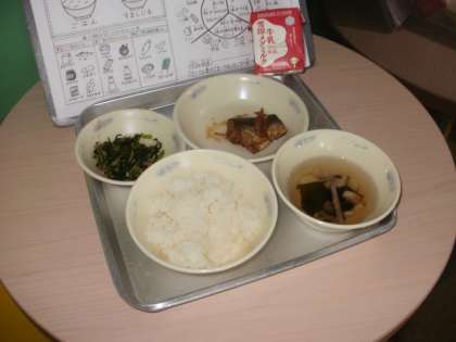ごはん・牛乳・さばのかわり煮・だいこん葉のごまいため・すまし汁