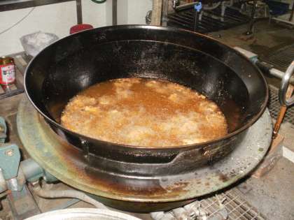 「さわらの塩こうじあげ」は新献立です。塩こうじは米を発酵させた伝統的な調味料です。塩こうじに漬けると、酵素の働きで、魚や肉は柔らかくなり、塩味だけでなく、甘味や旨味、こうじのほのかな香りが加わって美味しく仕上がりました。