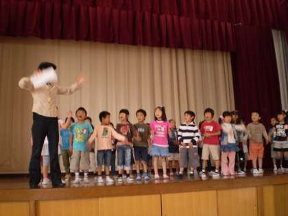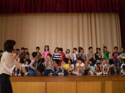 1年生は,学芸会の練習に一生懸命取り組んでいます。体育館の舞台から一番遠い窓を目がけて,声を出す練習を続けています。その結果,少しずつ大きな声が出せるようになってきました。今日は動作もつけて練習しました。