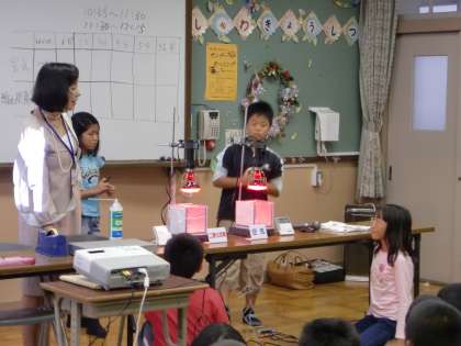 二酸化炭素と空気では,どちらがより暖まるかを調べました。