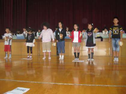 体育館で,学芸会の練習をしました。