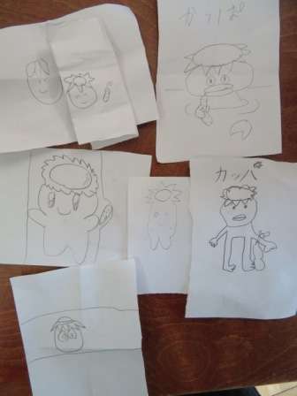休み時間に「絵伝言ゲーム」をしていました。
