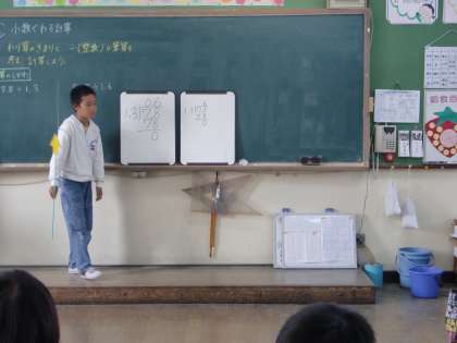 筆算では,小数点を右に移動して求めることをみんなで確認しました。