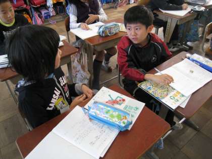 友だちと意見を交かんしながら考えました。