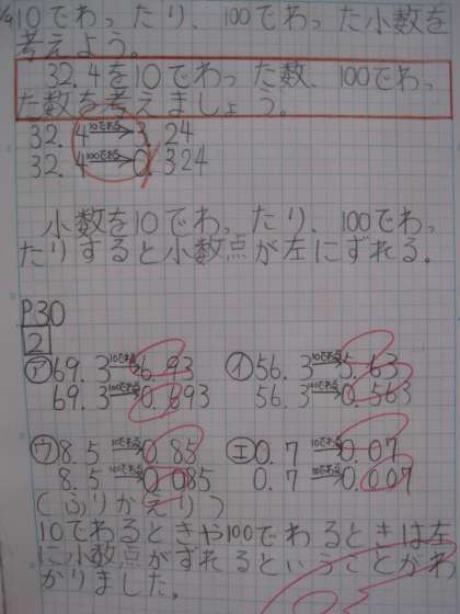 小数の勉強が続いています。