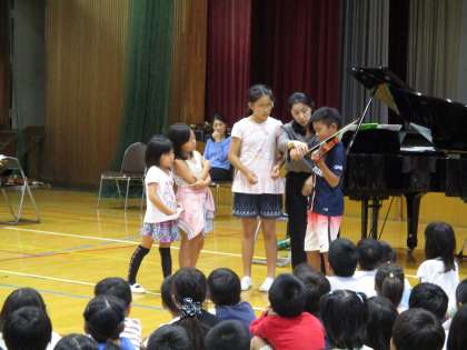楽器紹介では,体験コーナーもあり,
